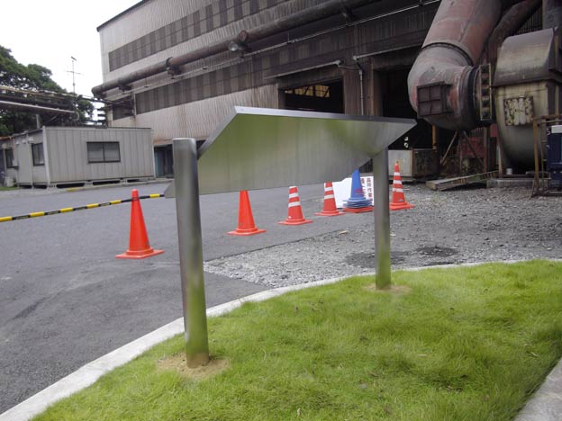 しばらく前に製作してあったステンレス看板の設置工事をしました。
