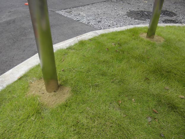 メチャメチャ迷うところなのですが、今回は敢えて、表面だけ土で埋め戻しました。地表5cm下まではセメントが入っています。