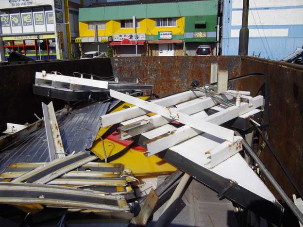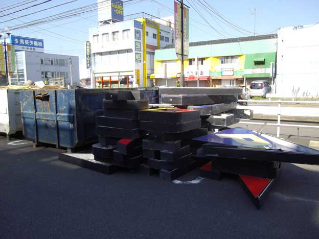 パチンコ店の改修工事で、既設の看板を撤去しました。
