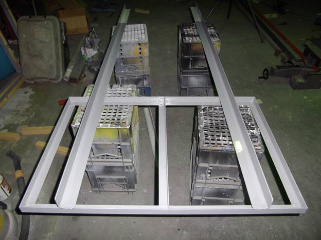 高さ2700*横20mのアングル枠・0.5~0.6t位のトタンの面板。で、縦桟が1000ピッチ、横桟が何とビックリの1350ピッチ。この手の看板としては、中桟のピッチが倍以上広いのです。