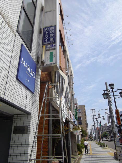 懸垂幕修理とネオン修理の下見です。