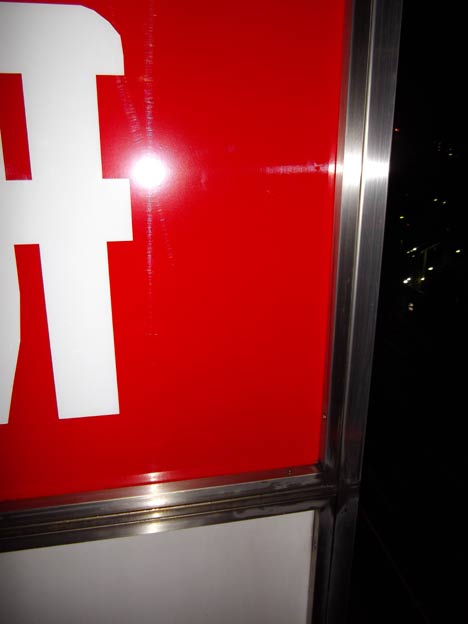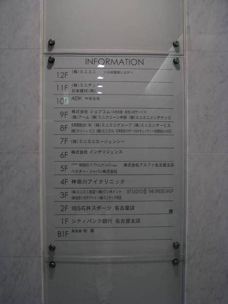 ここのビルのガラス製のテナントサインには、ステンレスのボルトが使用されています。