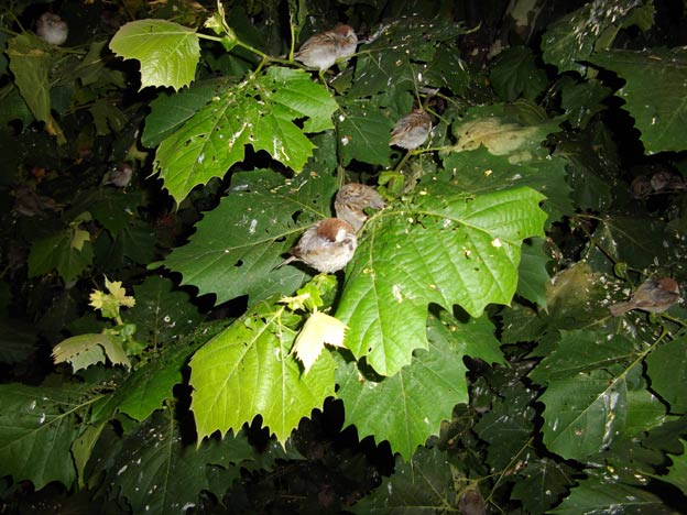 普通、スズメは近寄ると直ぐに逃げてしまいますが、夜中は寝てるので近づいても平気です。