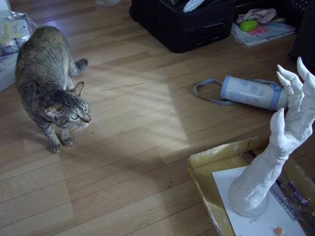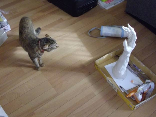 突然思いついて、紙粘土でアンクの腕を作り始めてみたのですが・・・。