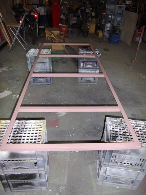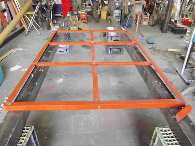 弊社は鉄骨作業は定盤ではなく、ウマで作業してます。サブロク以下のサイズだと定盤を使います。