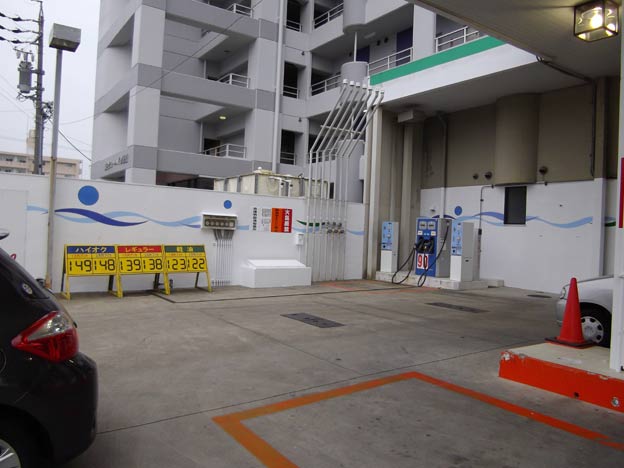 このガソリンスタンドはムチャクチャ安くて、ひっきりなしにお客さんが出入りしています。