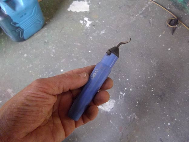 これは面取りカッターで、内径側のバリを除去するのに便利な道具。