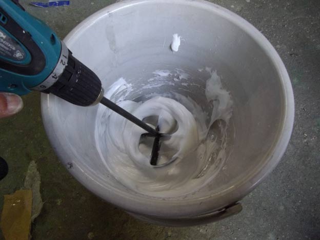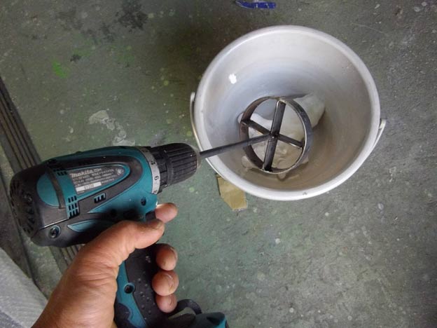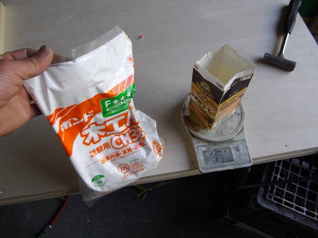 酢ビ系接着剤(要するに木工用ボンドですね)とアミノールを秤で正確に量り、混ぜ合わせます。