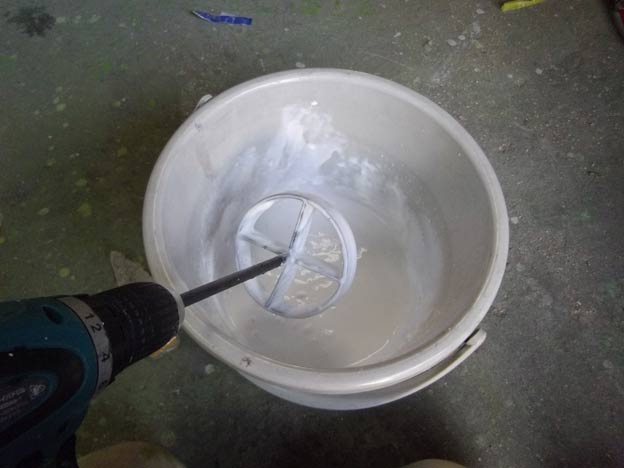 ペンキの攪拌器の場合は、丸棒にフラットバーを溶接するだけですが、今回はポリバケツを使うので、輪切りの丸パイプを使ってみました。