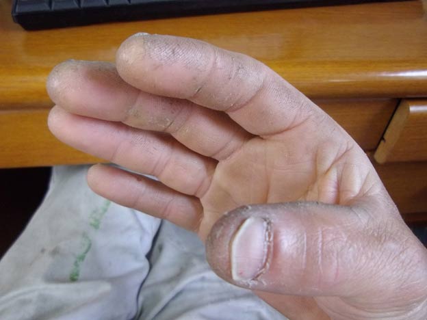 板材(アルミ複合板やステンレス板など)を素手で持ったりすると、僅かですが皮膚に傷が付くようで、それらが積もり積もってガサガサになります。