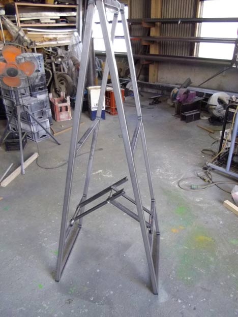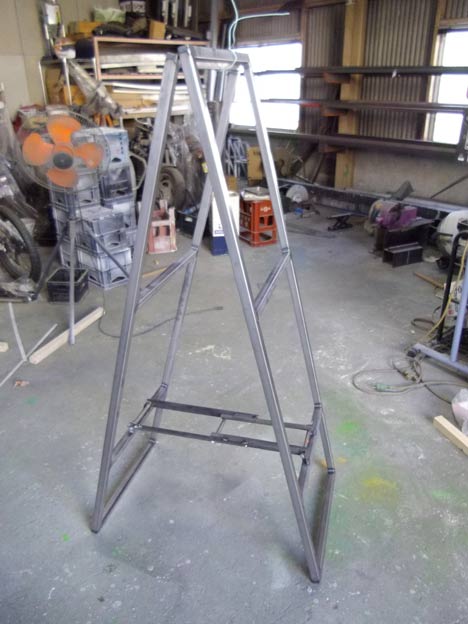 既製品などよりも肉厚のパイプを使用して、頑強なA型看板を作ります。