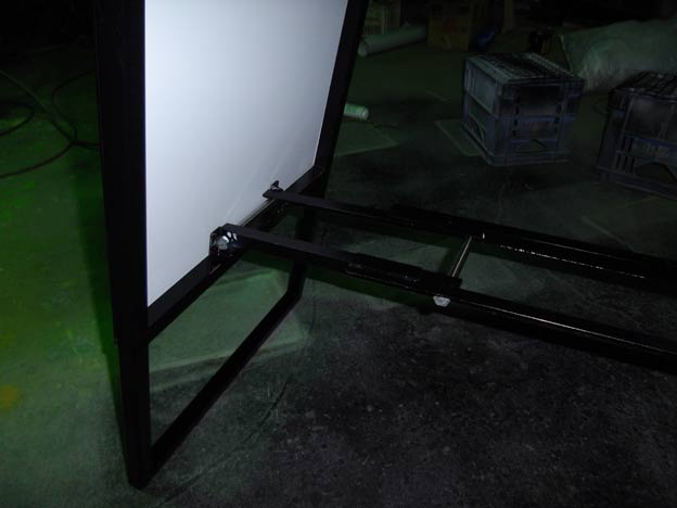 A型看板といいますと、木枠で製作されるケースが多いようですが、弊社の場合は鉄枠で製作するケースが多いです。