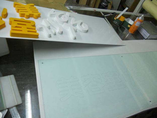 マトモに箱型に組んでしまうと上部のプレートが看板の中に入らないので、フレームの一部が取り外しできるようにして製作しました
