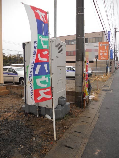 以前入居していたテナントの看板のポールが残されており、その上に箱型の看板を載せました。
