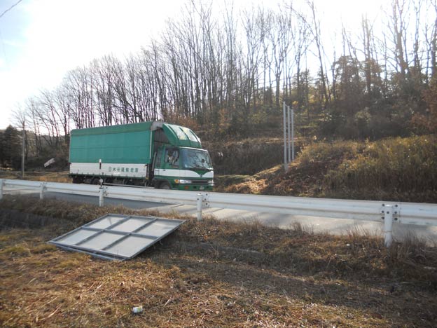 真横にクルマを置くスペースがないので、道路を挟んだ場所にトラックを置きました。