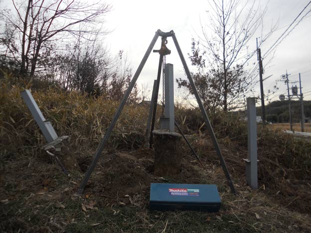 手前は外した看板パネル。向こう側に支柱が見えます。