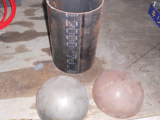 165.2φの丸パイプの端材と、165.2用の半球キャップ。
