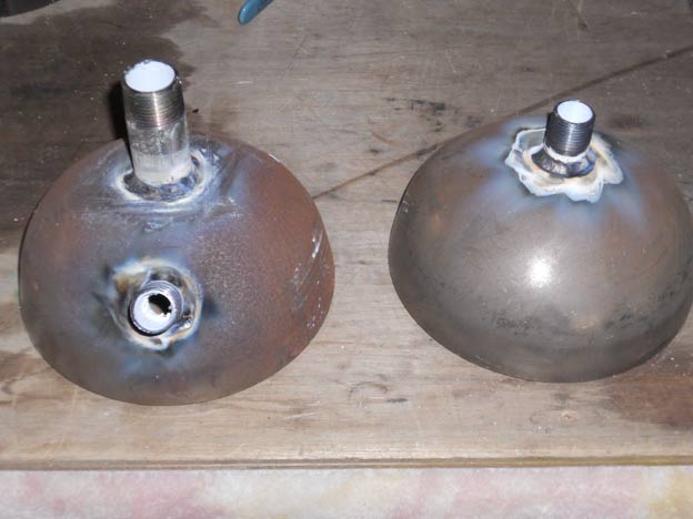 ホームセンターで買ってきた配管用のニップルを加工して、半球キャップにTIGで溶接。溶棒やCO2では、エア漏れしてしまうでしょうね。