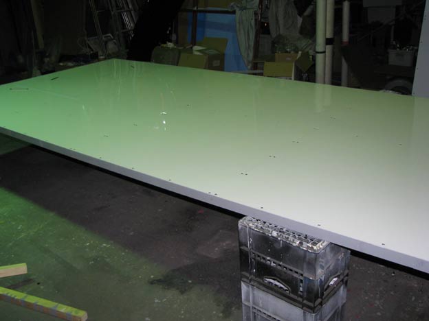 蛍光灯器具を32灯交換と、2コマ分のシート剥がし。さらに、4コマ分の新規シート貼り。