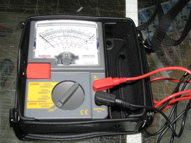 サーキットテスターは、自分の体の抵抗測定ができますが(笑)、メガーで同じ事をやると感電します。