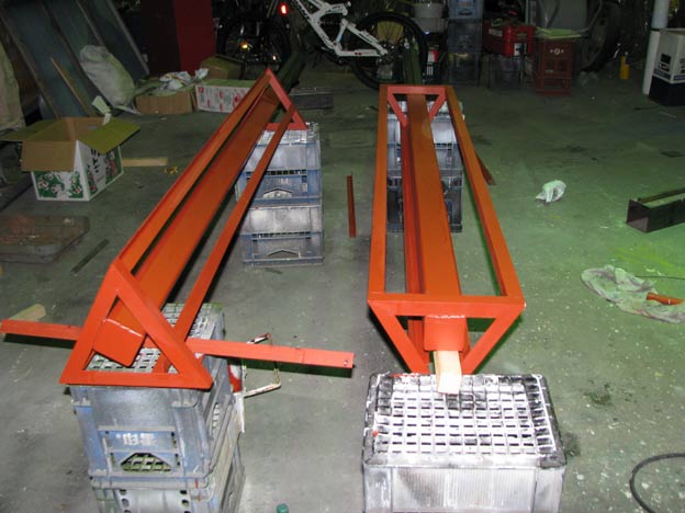 もっと大掛かりな物の場合は、最初に短い支柱を建てておき、それに対して抱き合わせ&積み上げで溶接していきます。