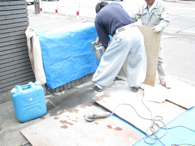 現場が街中の片側2車線道路沿いで、乗用車がキツキツで3台分の敷地内の作業。