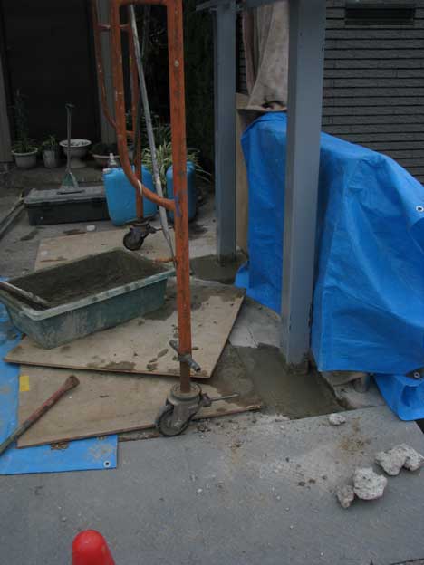 4tユニックは敷地内には入りません。道路使用許可を取って、ガードマン配備して・・・では、仕事内容の割りに大げさで、施工費も高く付きます。現場も遠いので、許可申請も面倒ですし。