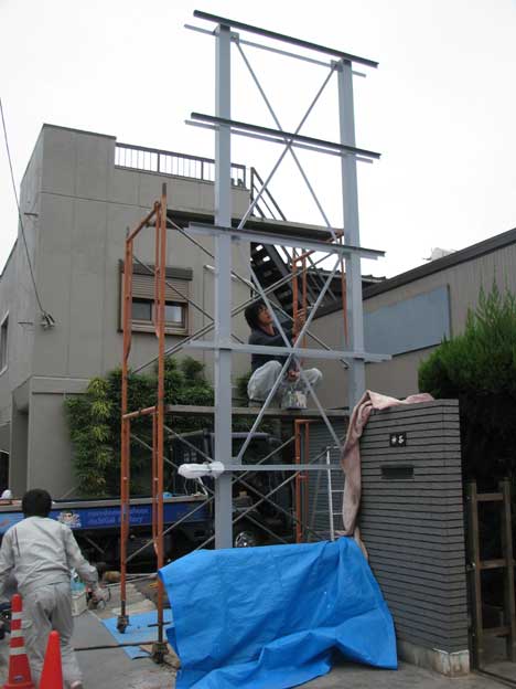ちなみに彼とは以前、人力で全高9m(!)のロードサインを手起こしで建てた事があります(笑)。