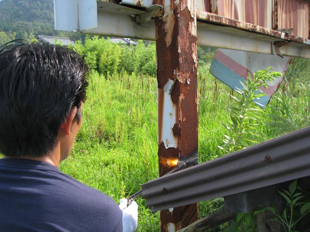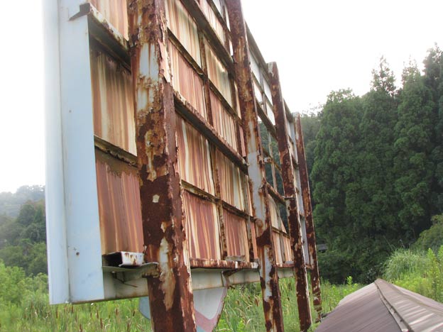 変更したのは当時3*6判のトタンを使用していたのを、ロール判に変更した事(2件目に勤めた看板屋さんがそうだった為)、木軸を組むのを釘からビス(コーススレッド)に変更した事くらいでした。