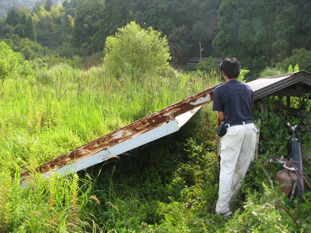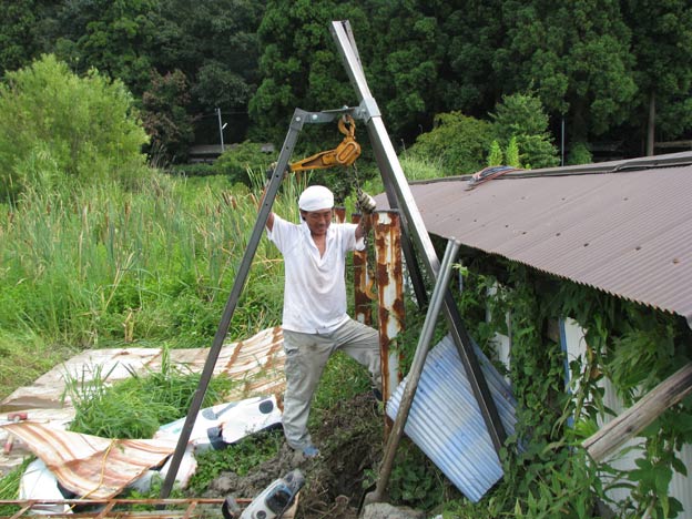 道路から数10メートル入った畑の中に建っており、ユニックなどの重機は使えません。