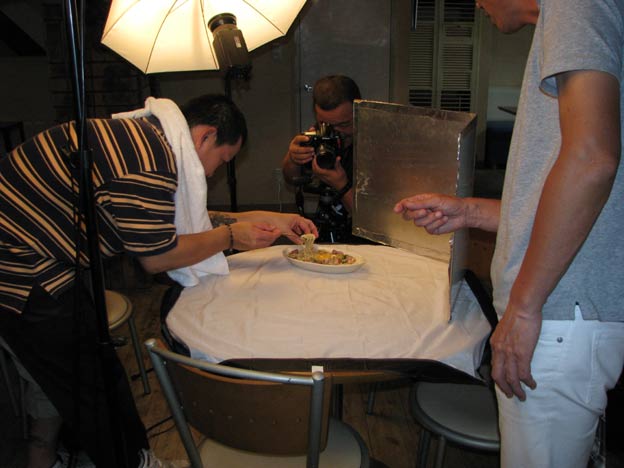 この男が汗を垂らしながら自分で段取りして、真面目な顔で仕事をしているのが信じられませんが(ニョホホ!!)、料理の撮影の経験も豊富な彼の事、なかなか鋭い意見も出たりして、少し見直した感じです(笑)。