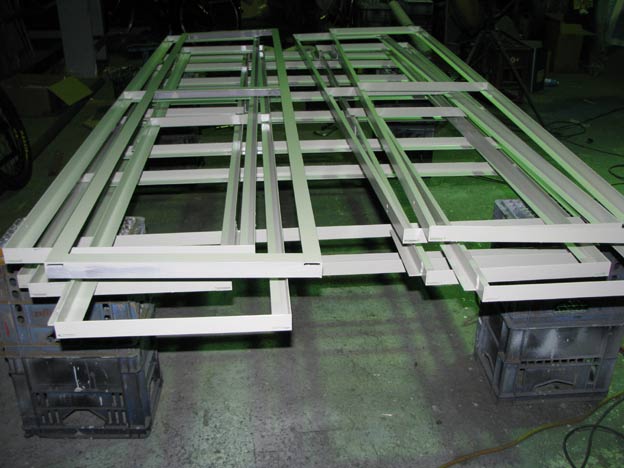 現場では事故防止のため、溶接はしたくありませんので、予め準備したフレームをビスで組み付けました。