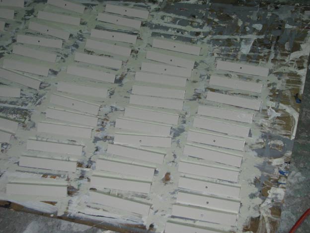 元々のコンクリート壁面の上に20mm程度浮かせた状態で発泡ウレタン成型の化粧材が取り付けられており、発泡ウレタンにはビスは効かないので(パンチすれば一発で破れるくらいの脆さ)、ビスを買出しに行ったりして、ちょっと大変でしたよ~~~。
