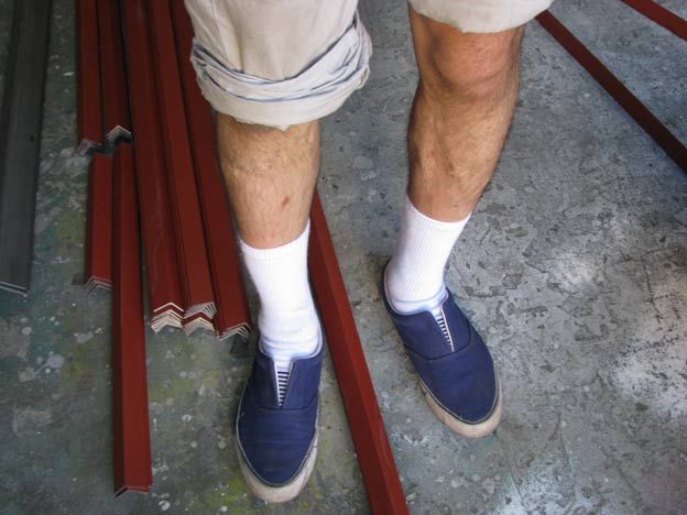 やってられんので、作業ズボンを捲り上げて半ズボン化。