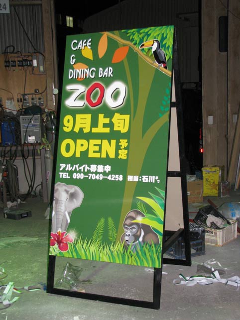 この手の看板は1~2ヶ月で御役御免なので、とにかく安い材料で製作しています。