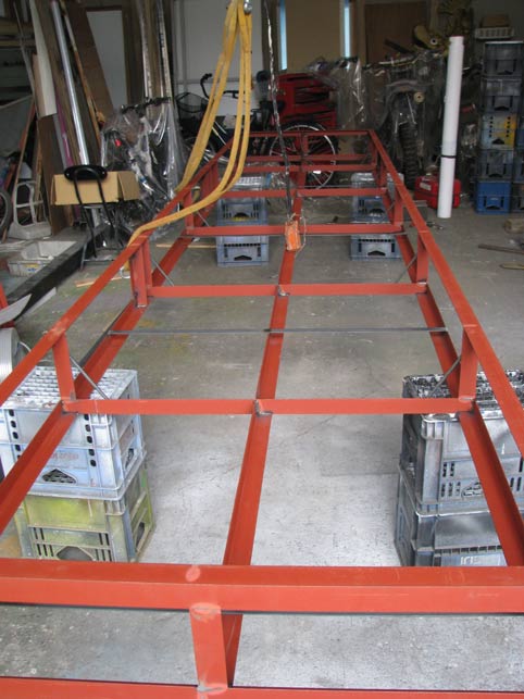 完成したので、天井クレーンで吊り上げて塗装をします。