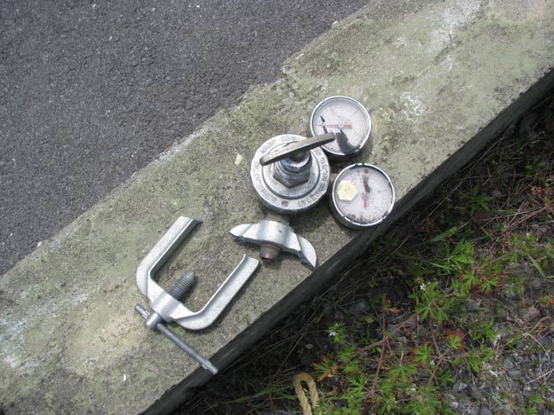 作業は調子よく進んでいたんですが、切断した支柱をアセチレンのメーターにぶつけてしまい、メーターが壊れてしまいました。トホホ・・・。