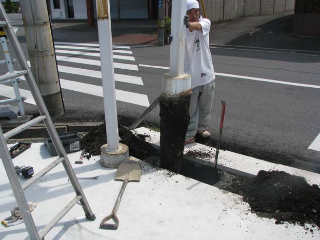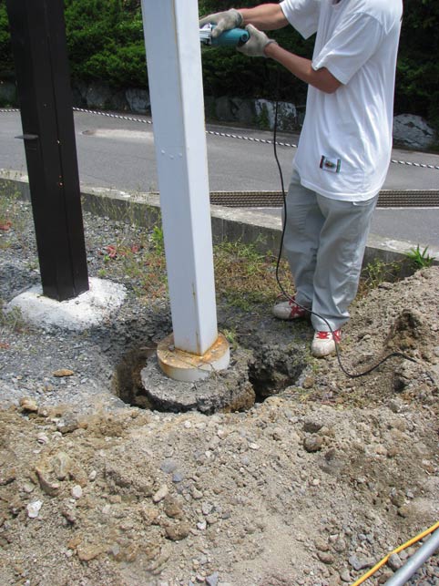 もう一件の現場は、支柱の根元がこんな事になってました。