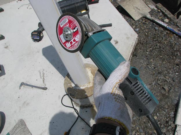仕方ないので近所のホームセンターでディスクグラインダーとダイヤモンドカッター、セメント、左官道具を買ってきました。