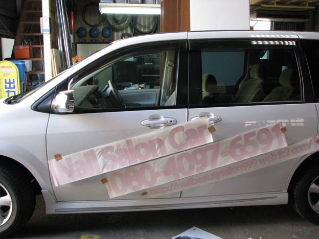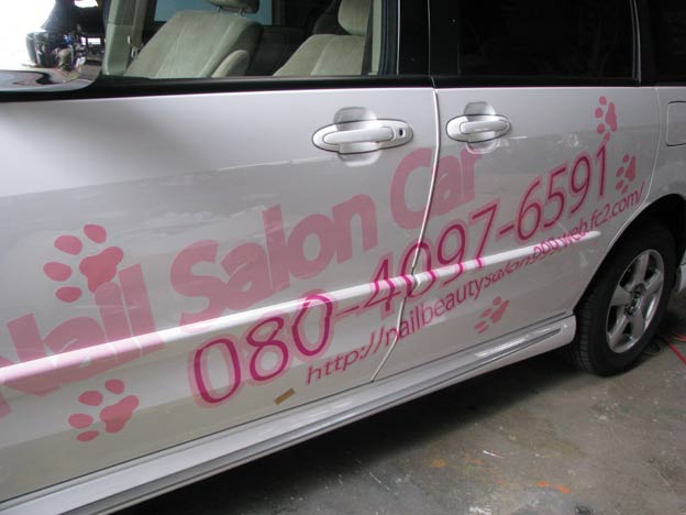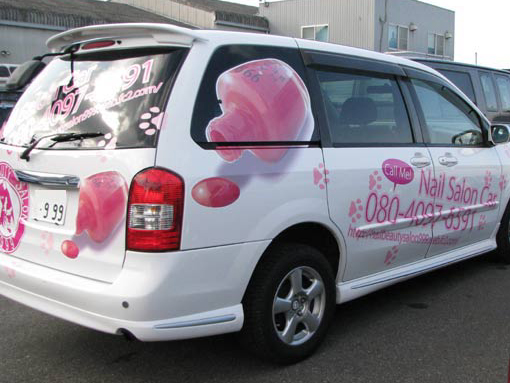有名なネイリストさんの出張ネイルサロンとして使用する車に、マーキングをして下さいとのご依頼です。