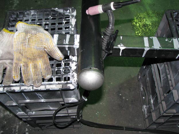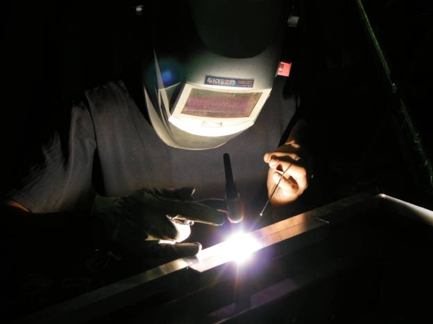 半自動溶接だと密閉性が低いので、TIGにて溶接。