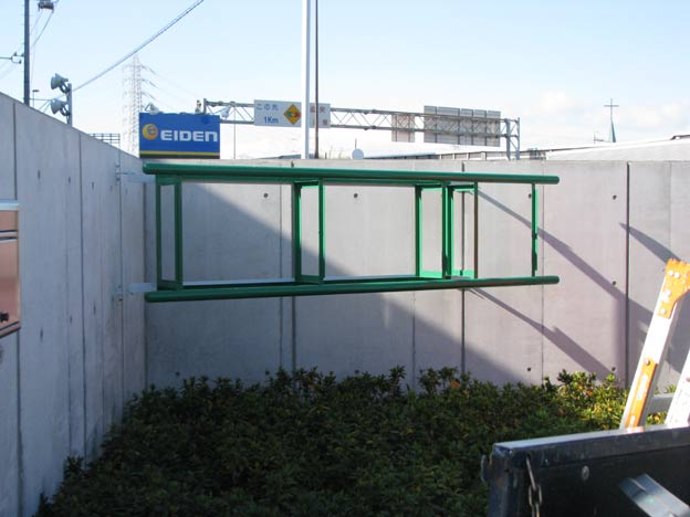 視認性を上げるため、擁壁に対して斜めに取り付けます。