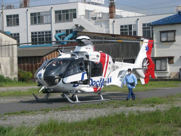 ドクターヘリでした。救急車もその場に来ていましたが、ヘリも救急車も止まったままです。