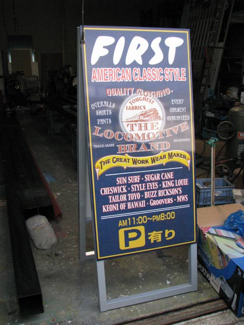 鉄枠、アルミ複合板、IJ出力貼りのオーソドックスな小型看板。