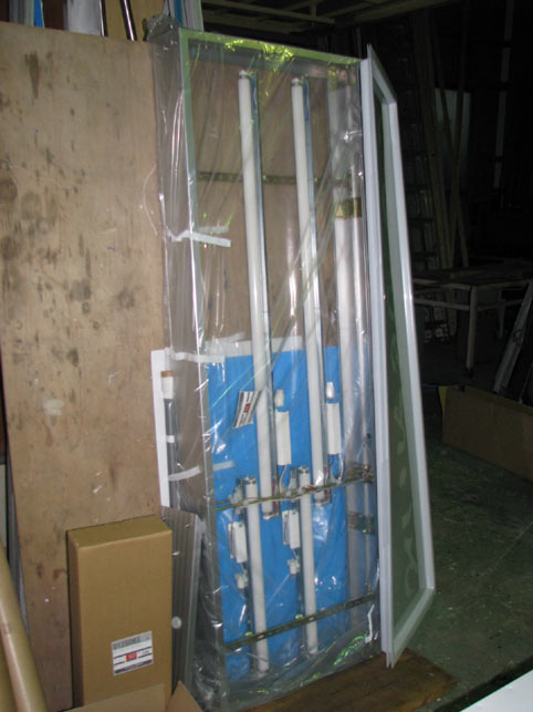 向こう側に立てかけてあるのがアクリル面板です。