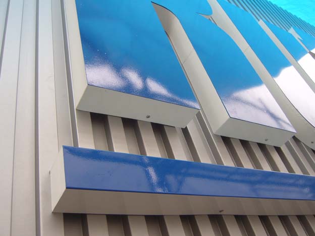 経年後に看板を改修する時、カルプ文字は作り直さなければならない場合がありますが、鉄板製であればシートの貼り替えだけで済むというメリットも。