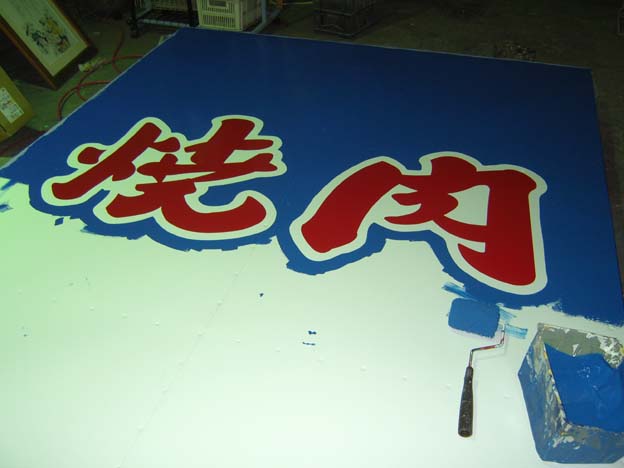 現場で文字書きや塗装をしたり、工場内でも鉄骨などを塗装することはありますが、看板そのものを工場内で塗装することは、弊社ではかなり稀です。