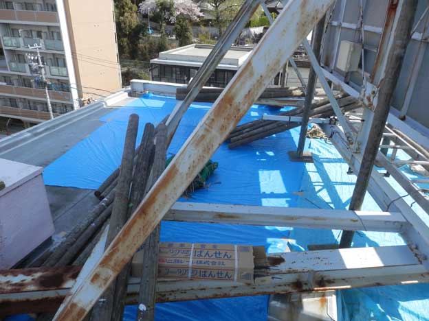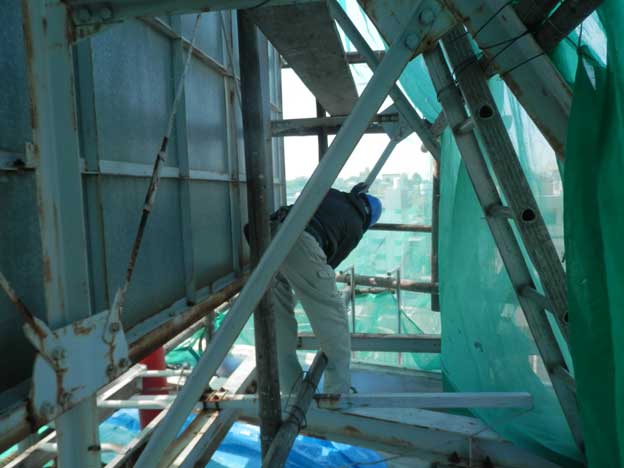 今回は意匠面だけでなく、鉄骨も塗装します。