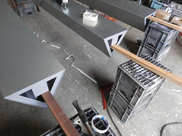 薄型の看板なので、支柱を通す部分をプラズマで切り抜きました。