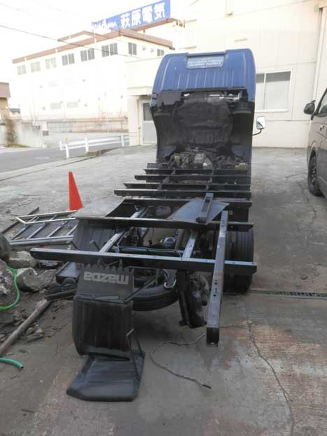 弊社に来た方々は、みんなこの状態のトラックを見て驚いていました。「大丈夫?」とか「ど、どうしたの?」とか(笑)。